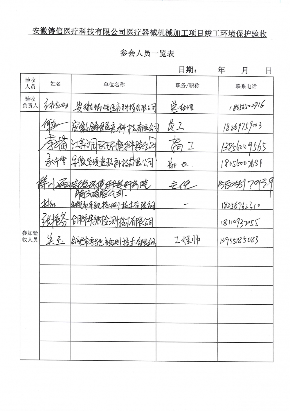 安徽鑄信醫(yī)療科技有限公司醫(yī)療器械機械加工項目竣工環(huán)境保護驗收